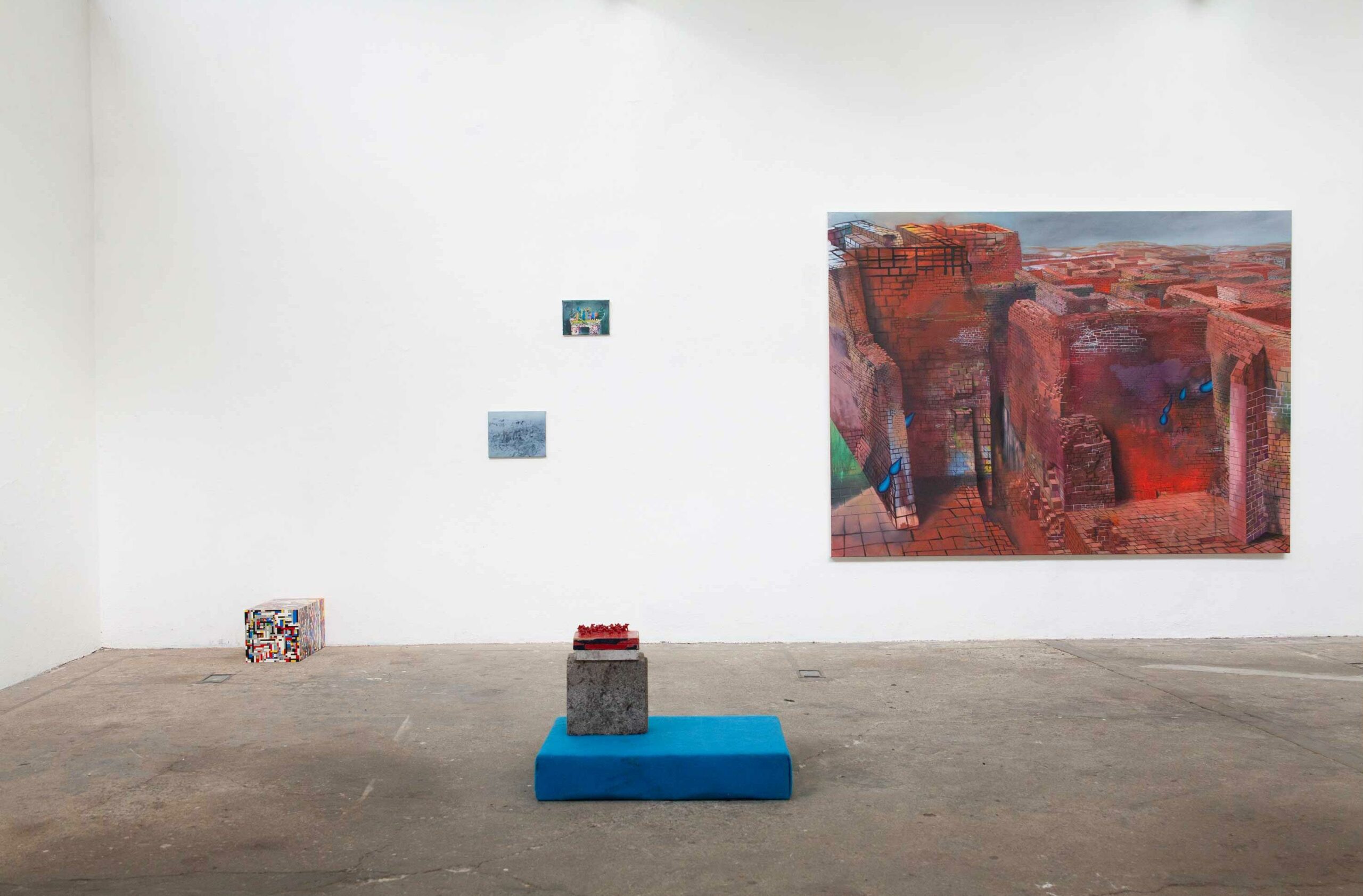 Für Martin Schuster bildet Kontemplation, das konzentrierte Betrachten, das Schlüsselkonzept. Seine detaillierten Bildwelten versprechen langanhaltende Blickkonversationen, welche mit Verspieltheit und dahingeworfener Figürlichkeit die Melancholie und teilweise Unzugänglichkeit der Bildthemen durch Leichtigkeit wieder auflösen. Dabei lässt Martin Schuster abstrakte Konzepte wie Verlangen und Empathie mit malerischen Mitteln zu seinen Protagonisten werden. Text: Kathrin Wagner